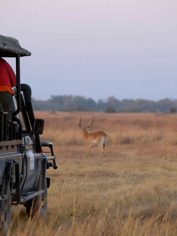 All travel between destinations takes place in an open-air safari vehicle, while twice daily game drives are the highlight in Moremi, Kalahari, and Savute.