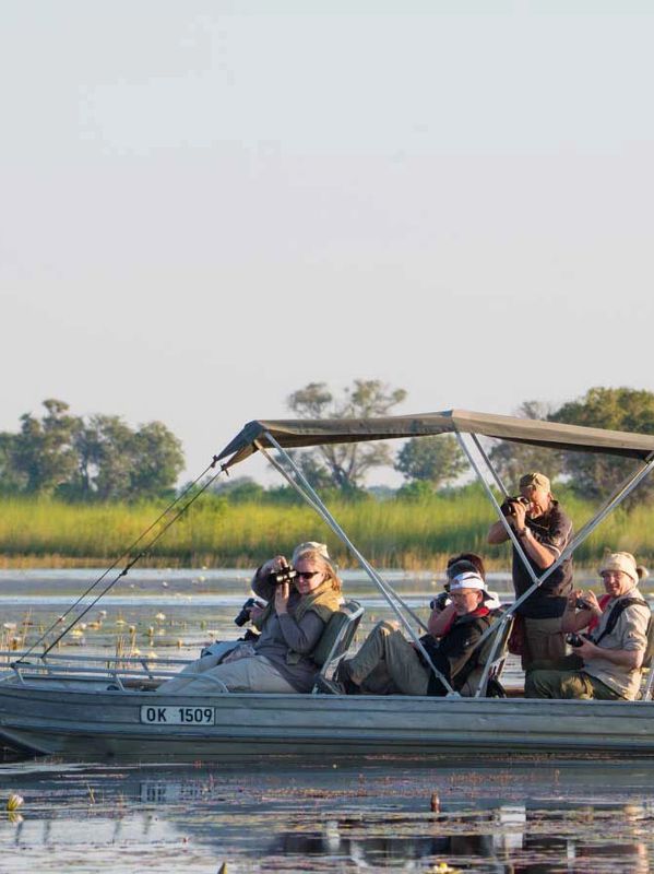 A 3-hour cruise when travelling into the Delta to access the campsite at Xaxaba. There are certain sections of the island where swimming is possible. If it is safe, and the water levels are low, guides will take you for a dip in the pristine waters.