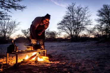 before enjoying a quiet afternoon siesta. High tea is served at 15h00 and is followed by game drive until sunset. After game drive, arrive back at camp and enjoy sitting around the fire before indulging in a 3-course dinner, and then, your welcoming bed.